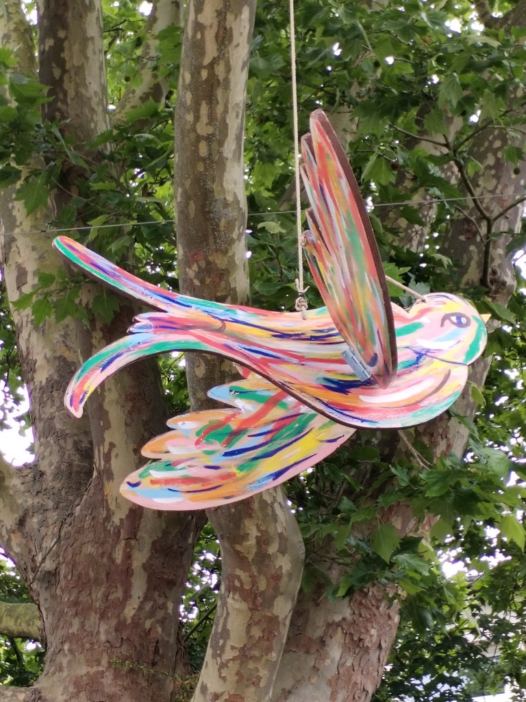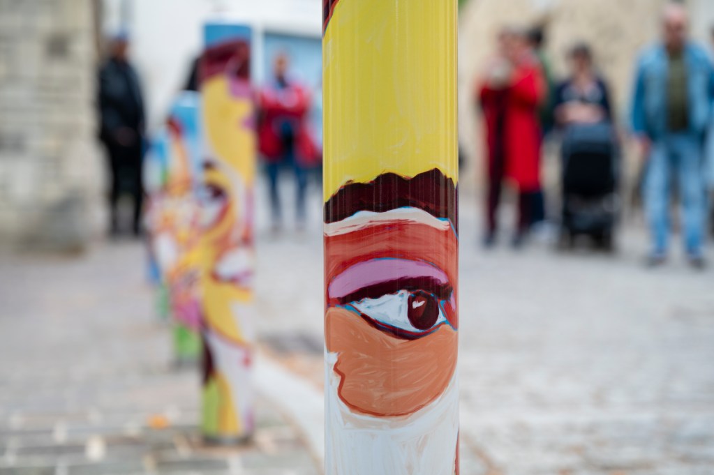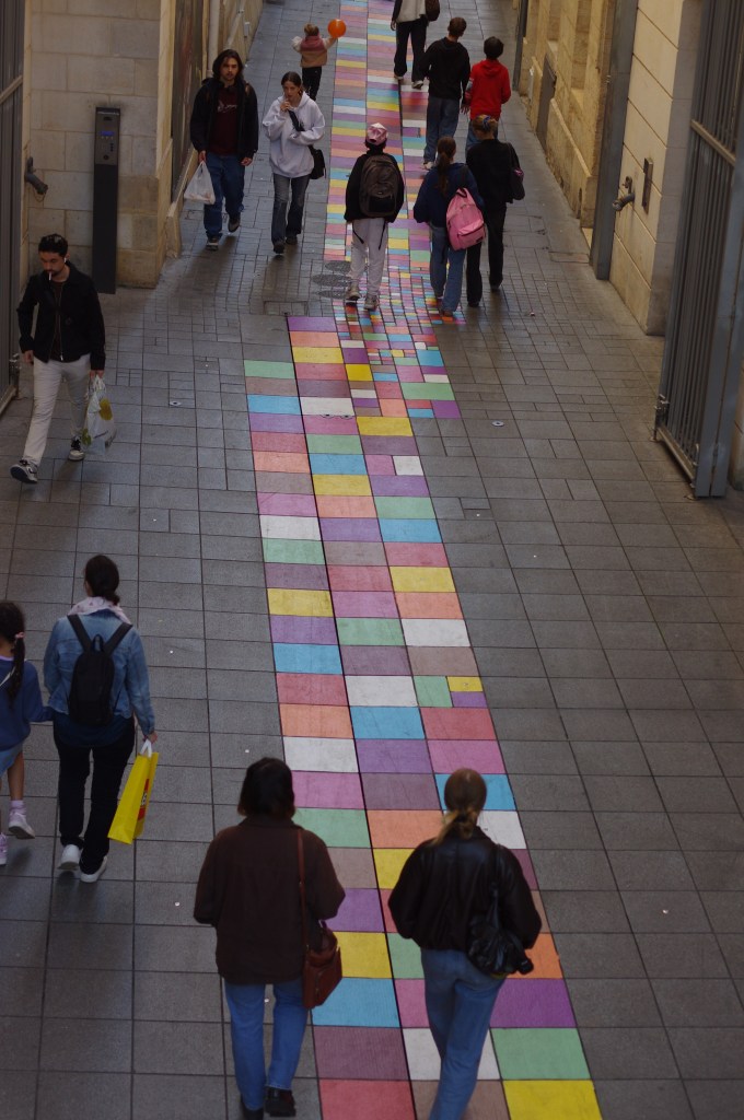 En 2025, elle s’associe aux villes de Bagneux et de Bordeaux. À Bagneux dans le Sud de Paris, elle créée un projet d’enchantement artistique du centre ville, le parcours artistique « Les visages de Bagneux », mêlant portraits peints de balnéolais.es, ciels de ville, kakémonos, mobiliers urbains et peintures au sol. À Bordeaux, à l’occasion des 10 ans de la Promenade Sainte-Catherine, l’artiste a été invitée à créer une série de peintures au sol, pensées comme des éclats de couleur qui rythment la déambulation piétonne. Inspirées des célèbres parapluies suspendus, ces compositions graphiques reprennent leurs teintes vives — violet, rose, jaune, rouge, blanc et brun — et dialoguent avec l’espace urbain de manière joyeuse et sensible.