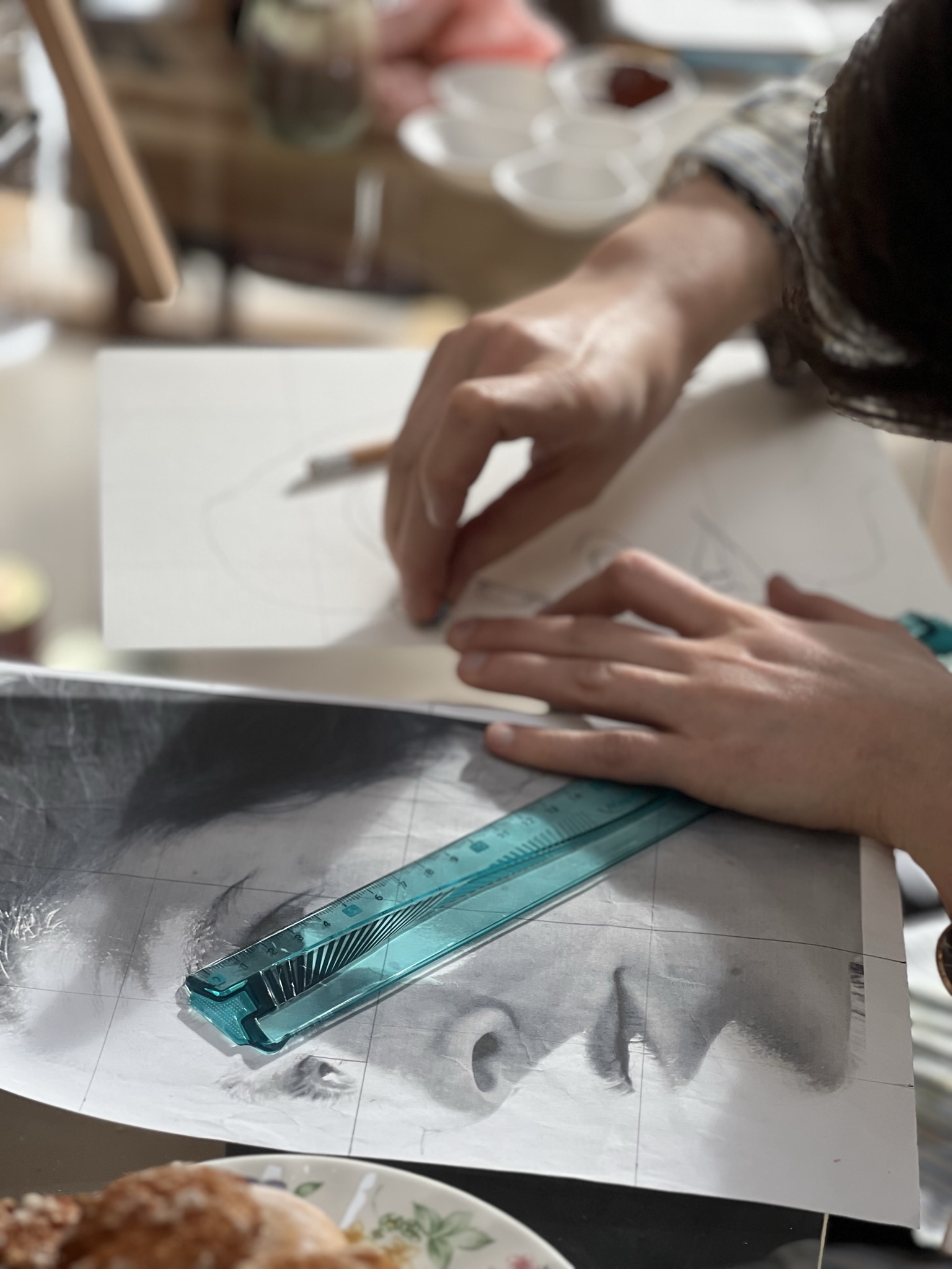 Vous recevrez des conseils appliquĂ©s au dessin de portrait et Ă l’utilisation de la peinture acrylique.
